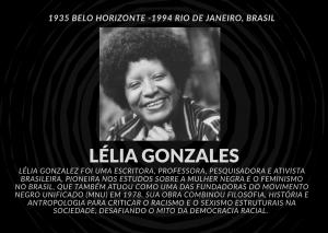 Aos oito anos, Lélia deixou a capital mineira, partindo em direção ao Rio de Janeiro com toda a família, onde permaneceu até o fim de sua vida, em julho de 1994. A exemplo do que ocorre com uma parcela considerável das mulheres negras desse país, ela exerceu as funções de empregada doméstica e babá, conforme relatou em entrevista concedida ao jornal O Pasquim, em 1986: Quando criança, eu fui babá de filhinho de madame, você sabe que criança negra começa a trabalhar muito cedo. Teve um diretor do Flamengo que queria que eu fosse para casa dele ser uma empregadinha, daquelas que viram cria da casa. Eu reagi muito contra isso então o pessoal terminou me trazendo de volta para casa (O Pasquim, n. 871, 1986, p. 8). Apesar das dificuldades, em 1954, Lélia Gonzalez concluiu o Ensino Médio no Colégio Pedro II, tradicional instituição de ensino carioca. Quatro anos depois, graduou-se em História e Geografia. Em 1962, tornou-se bacharel em Filosofia pela Universidade Estadual da Guanabara, atual UERJ. Como professora universitária, lecionou na Faculdade de Filosofia, Ciências e Letras da Universidade Gama Filho, também na capital fluminense (VIANA, 2006, p. 49). Autora dos livros Lugar de negro, publicado em 1982 (em coautoria com Carlos Hasenbalg) e Festas Populares no Brasil, lançado em 1987, Lélia Gonzalez teve participação destacada em um dos momentos mais significativos da história da população negra no Brasil: ao lado de outros militantes, fundou em 1978, na cidade de São Paulo, o Movimento Negro Unificado contra a Discriminação Racial (MNUCDR, sigla mais tarde reduzida para MNU), que em seu manifesto denunciava a falácia do mito da democracia racial, reivindicava o fim da violência e da discriminação sofrida pelos negros cotidianamente, além de exigir políticas públicas em benefício da comunidade afro-brasileira.
