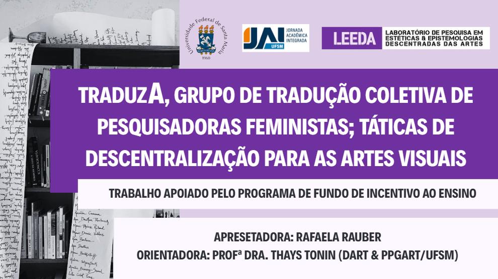TRADUZA, GRUPO DE TRADUÇÃO COLETIVA DE PESQUISADORAS FEMINISTAS; TÁTICAS DE DESCENTRALIZAÇÃO PARA AS ARTES VISUAIS - Rafaela Rauber