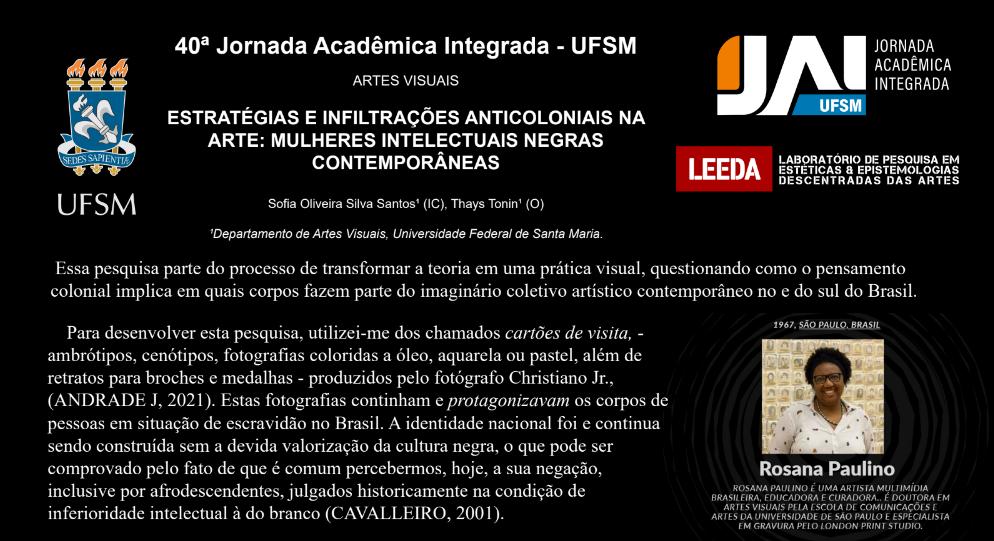 ESTRATÉGIAS E INFILTRAÇÕES ANTICOLONIAIS NA ARTE: MULHERES INTELECTUAIS NEGRAS CONTEMPORÂNEAS - Sofia Oliveira Silva Santos (BANNER)