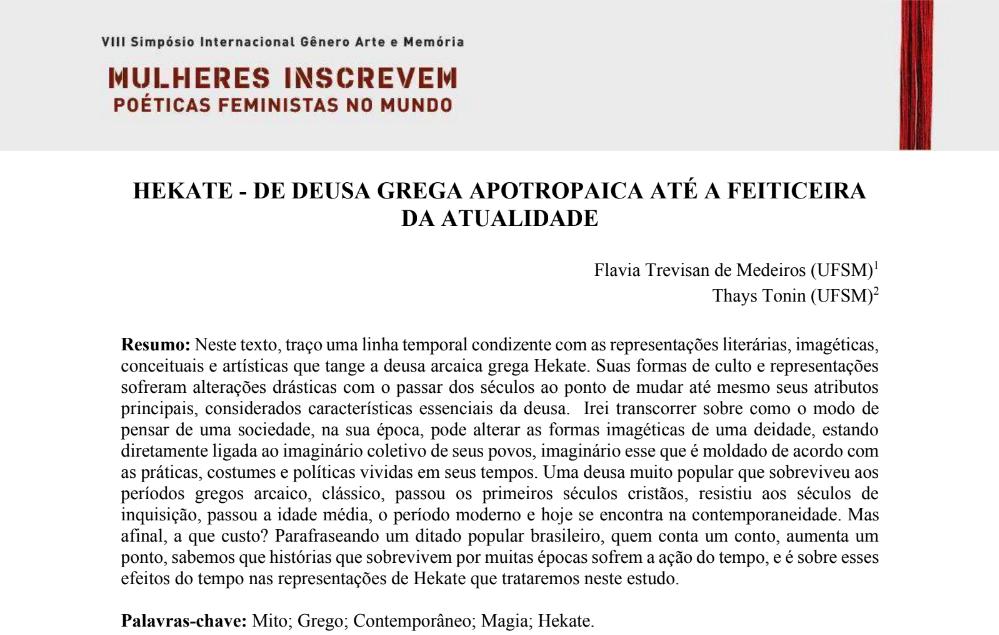 HEKATE - DE DEUSA GREGA APOTROPAICA ATÉ A FEITICEIRA DA ATUALIDADE - Flavia Trevisan de Medeiros, Thays Tonin