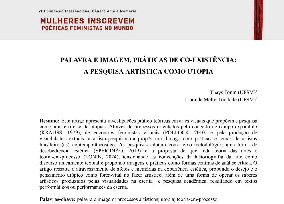 PALAVRA E IMAGEM, PRÁTICAS DE CO-EXISTÊNCIA: A PESQUISA ARTÍSTICA COMO UTOPIA - Thays Tonin, Liara de Mello Trindade