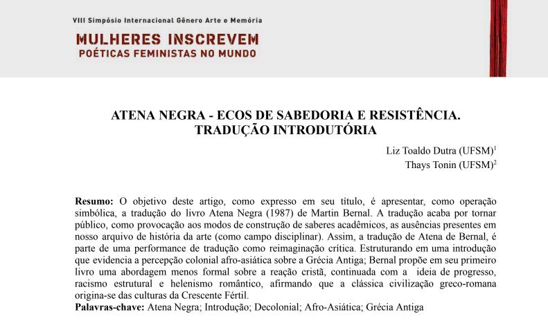PROJETOAFRO.COM E AÇÕES ANTICOLONIAIS EM REDE: CONTRIBUIÇÕES PARA UM ARQUIVO-VIVO DE ARTISTAS NEGRAS NO EIXO-SUL (RS E SC) - Thays Tonin, Adriele Nunes Alves, Flávia Samira Baltezan Villanueva de León, Sofia Oliveira Silva Santos