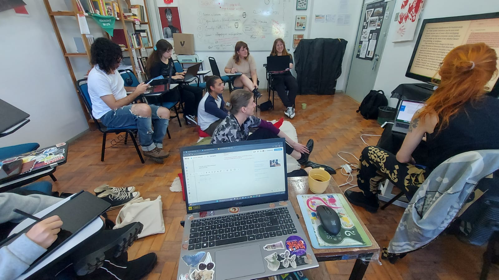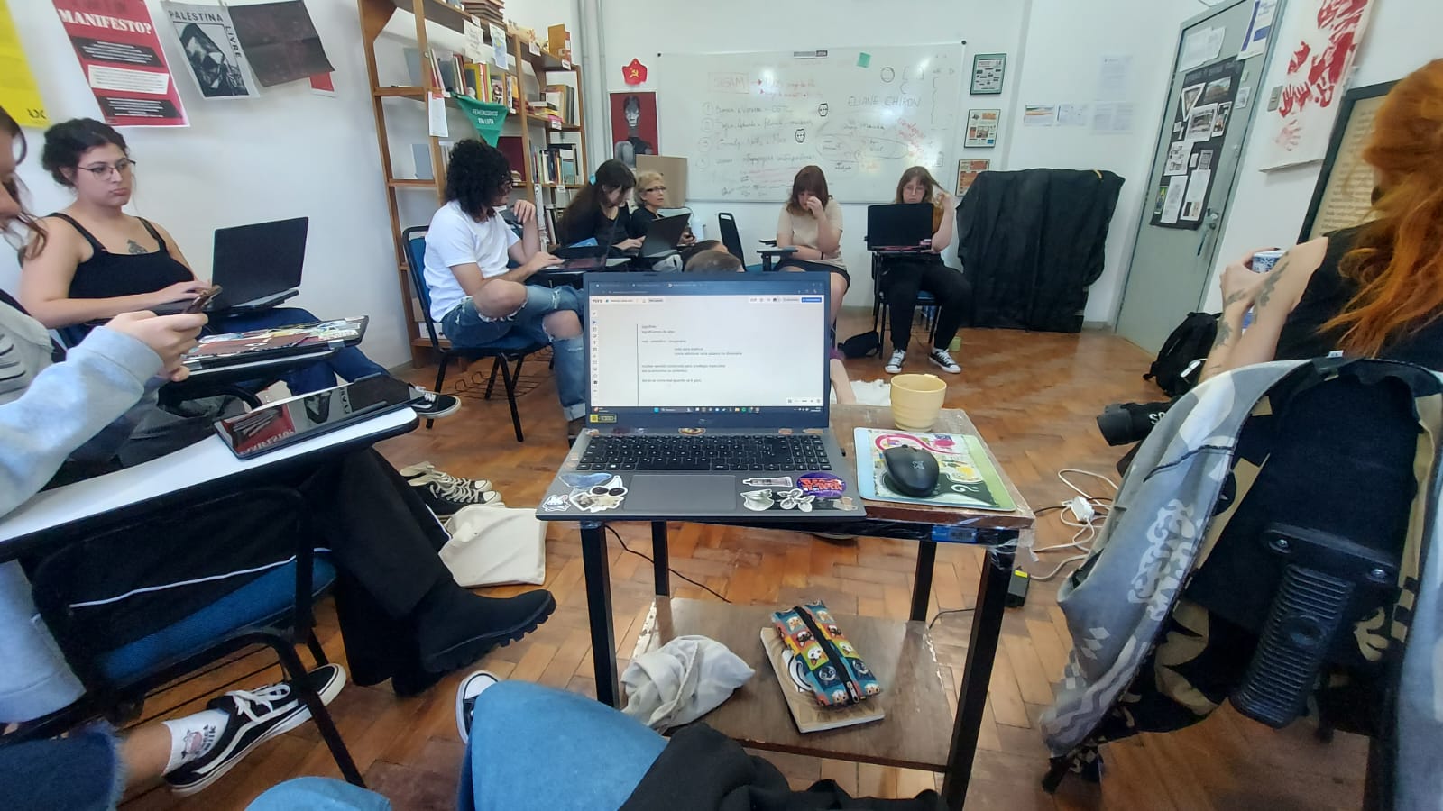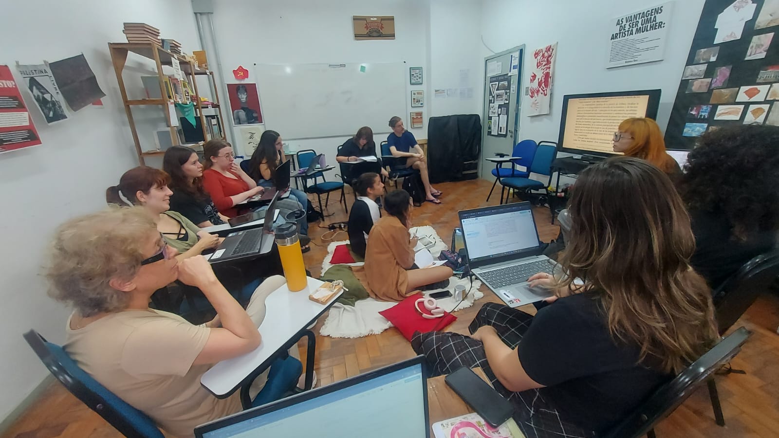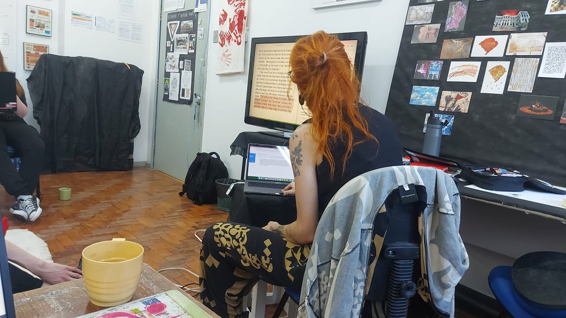O TraduzA – grupo de pesquisa em tradução: Arquivos & Artes Visuais é vinculado ao projeto de ensino ArquivA: Práticas em Acervos e Arquivos de Artes Visuais (nº 061985). Iniciado no primeiro semestre de 2025, foi e está sendo trabalhado a tradução como metodologia de ensino e pesquisa onde, por encontros regulares, toda a discussão e escrita foram produzidas de forma coletiva a partir de um exercício entre todas. As presentes se revezam em uma tradução simultânea em voz alta, acompanhada por uma escrita cooperativa, em meio a anotações e debates sobre os sentidos conceituais que emergem deste processo. Esta metodologia foi inspirada nos Seminários Mnemosyne, organizados pela Engramma (IUAV, coord. Monica Centanni) que partem da matriz metodológica de Aby Warburg, onde é imprescindível debater/estudar, horizontalmente, a intrínseca alquimia de palavra e imagem na linguagem que funda o imaginário coletivo. Este projeto é importante pois ao levar adiante esta proposta, descentra-se uma epistemologia, ressignifica-se sentidos e reoperam-se formas de apropriarmo-nos dos saberes e atravessando-os pelos problemas que tocam os corpos viventes no sul global.