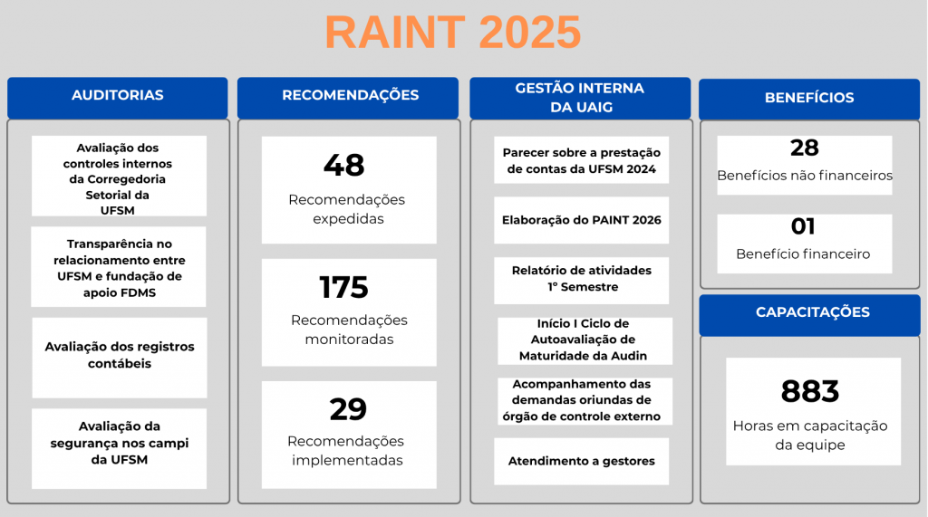 A Auditoria Interna divulga o Relatório Anual de Atividades da Auditoria Interna (RAINT), referente ao exercício de 2025.