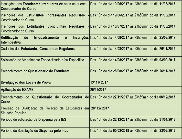 – Estudantes concluintes dos cursos superiores de Tecnologia, que tenham expectativa de conclusão do curso até dezembro de 2017 ou que tenham cumprido setenta e cinco por cento ou mais da carga horária mínima do currículo do curso da IES até o dia de retificação (25/08/2017).