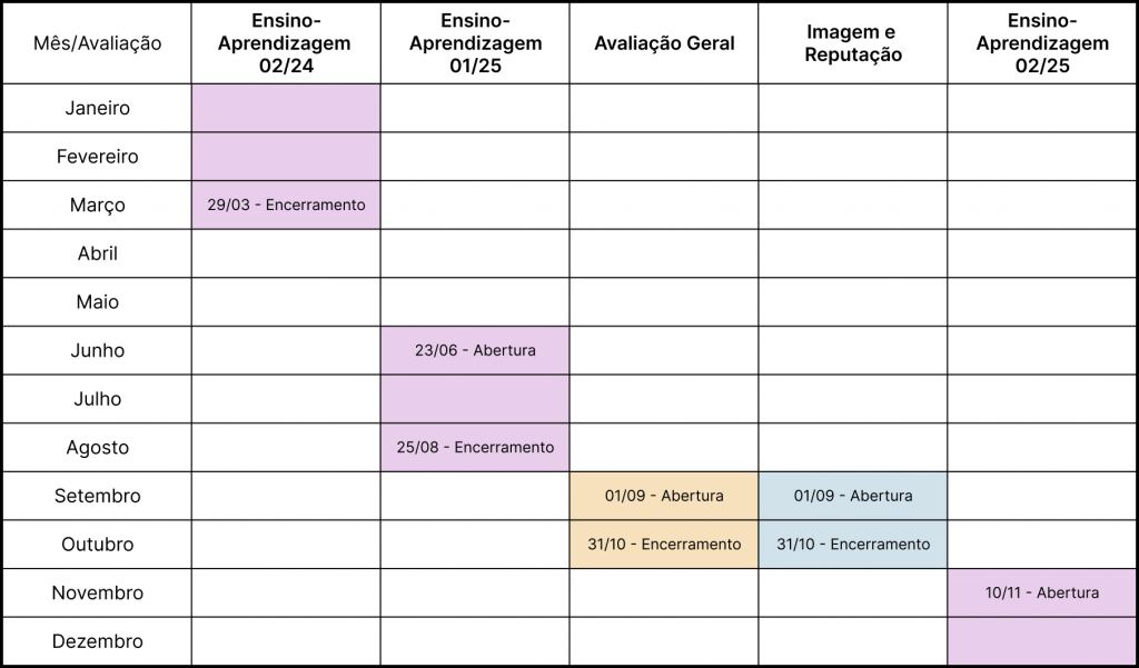 Calendário de avaliações 2025