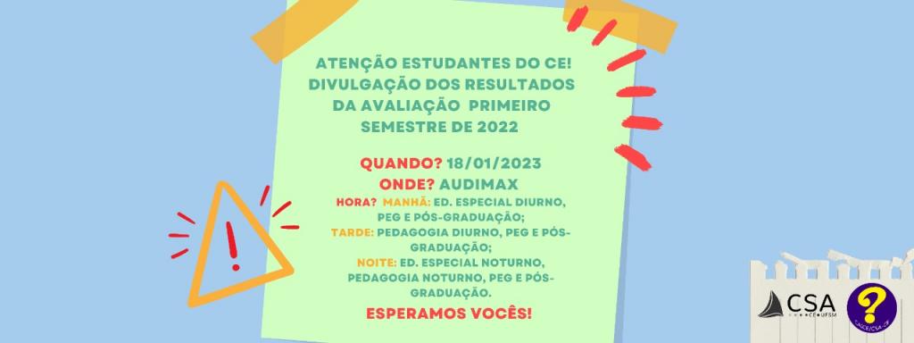 Dia 18 de janeiro, no AUDIMAX (Prédio 16), ocorrerá a divulgação dos resultados da avaliação do primeiro semestre de 2022 nos seguintes horários: