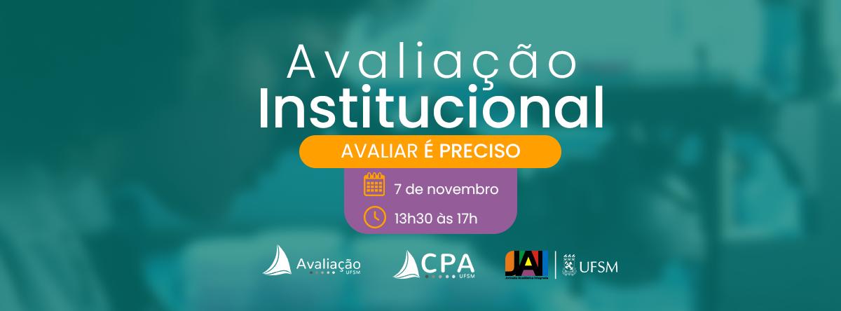 Este evento faz parte das atividades desenvolvidas na programação da 37ª Jornada Acadêmica Integrada /UFSM. O Evento é organizado pela CPA. A temática deste evento é da Avaliação Institucional e tem por objetivo socializar e integrar as atividades realizadas nas Comissões Setoriais/CSAs das Unidades de Ensino da UFSM, tendo como metodologia os relatos de experiências destas Comissões Setoriais. Este evento proporcionará a integração das CSAs, o compartilhamento de experiências, além da divulgação da sua subunidade de avaliação.