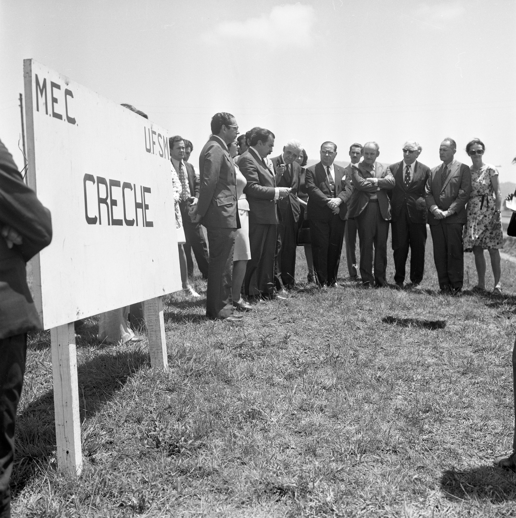 1972 - Lançamento da Pedra Fundamental da “Creche”, atual Unidade de Educação Infantil Ipê Amarelo (Foto UFSM.1972.337.001 de fotógrafo não identificado)