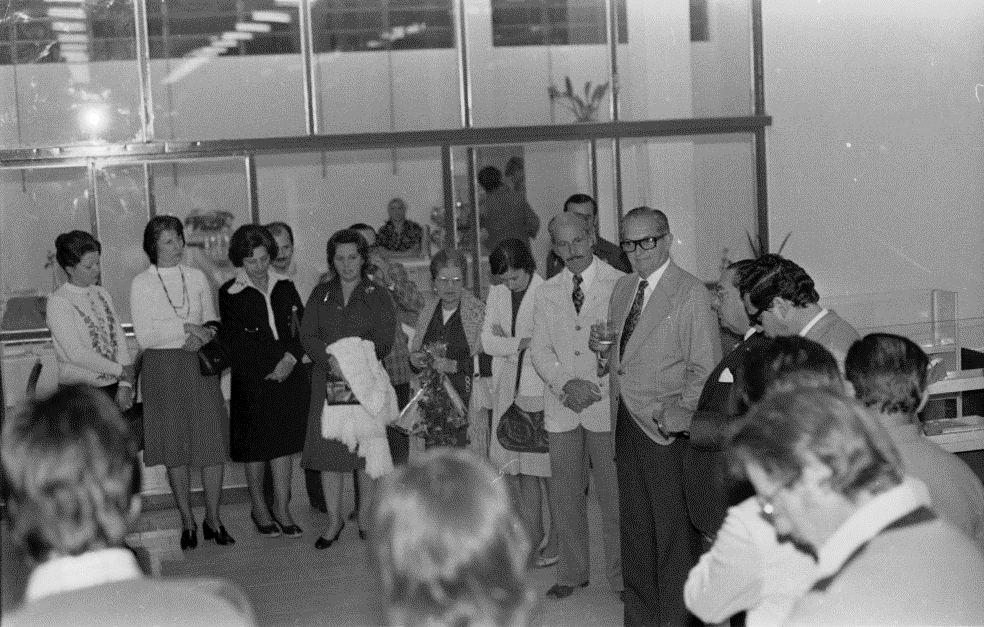 1977 – Inauguração da Feira Internacional do Livro na Biblioteca da UFSM (Foto UFSM.1977.090.FeiraIntLivroUFSM.0005 de fotógrafo não identificado)