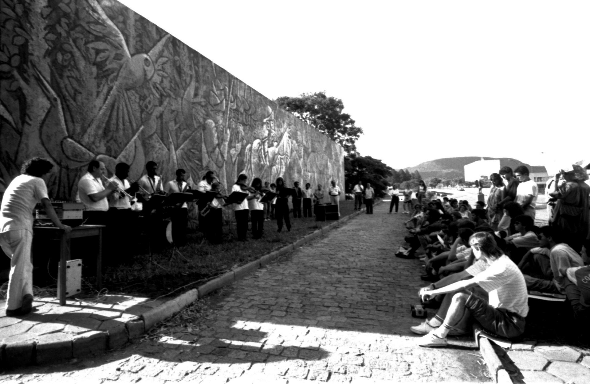 1992 - Inauguração do mural do Caixa Preta, obra de Juan Amoretti (Foto UFSM.1992.140.0002 de Orozimbo Penna)
