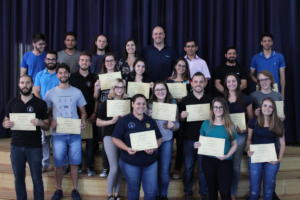 Estiveram presentes na solenidade, o diretor do Campus Cachoeira do Sul, Prof. Rogério Brittes; o vice-diretor, Prof. Lucas Delongui; a Coordenadoria Acadêmica, Profa. Renata Zampieri; o Coordenador de Pesquisa e Extensão, Prof. Jocenir Boita; e o Coordenador de Pesquisa e Extensão Substituto, Prof. Glauber Quadros. Para o Prof. Glauber, “o reconhecimento destes trabalhos é importante para a comunidade acadêmica em geral, pois além do destaque dado ao empenho dos apresentadores e orientadores, têm-se uma motivação do público para uma próxima edição do evento, de forma a gerar um aumento tanto em qualidade quanto em quantidade de trabalhos”.