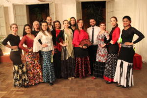 Amanhã, dia 24 de outubro, completa um ano que, na Casa de Cultura de Cachoeira do Sul, ocorria o espetáculo “Amistad del Fandango”, atividade do projeto de extensão “Prática Corporal em Dança Flamenca”, coordenado pela professora Verônica Donoso, do curso de Arquitetura e Urbanismo da UFSM-CS. O cenário do espetáculo foi criado através de Oficina de Cenografia, ministrada pela professora Paula Olivo, e teve a participação das alunas do projeto no corpo de baile, e também de convidados especiais: no cante e cajón Pedro Fernández, na guitarra flamenca Alê Palma, no baile e palmas Aline Nunes e Giovanna Alvarenga.