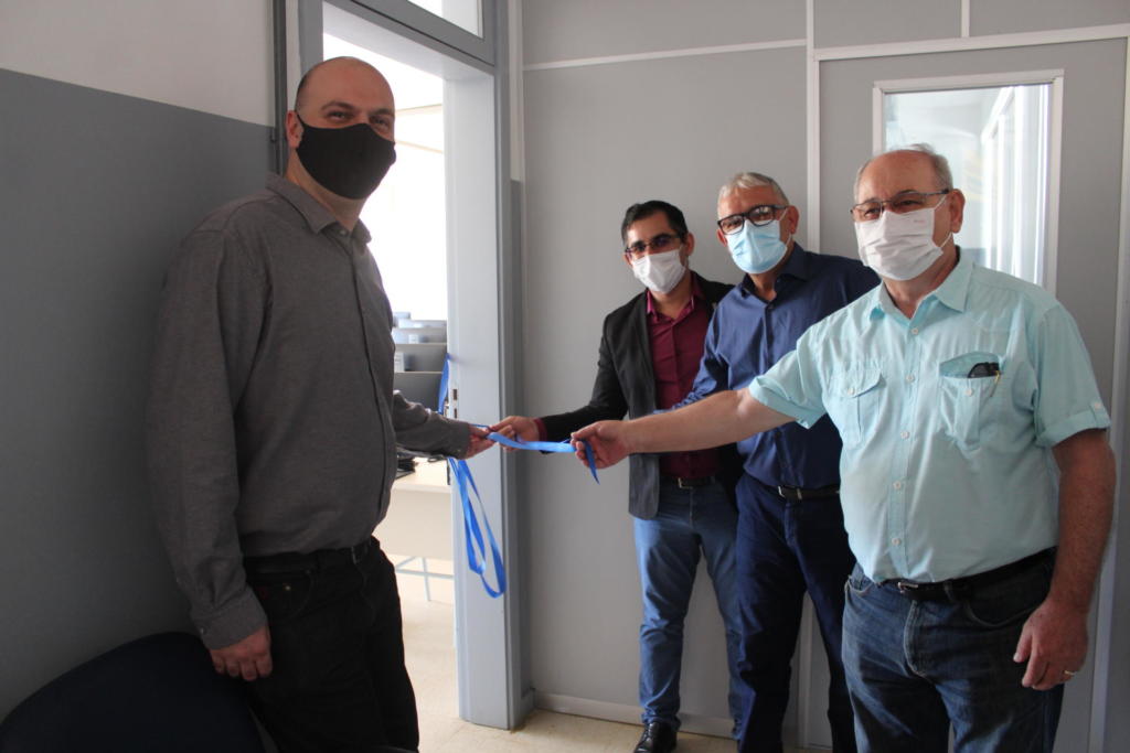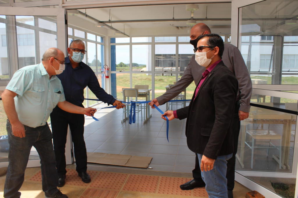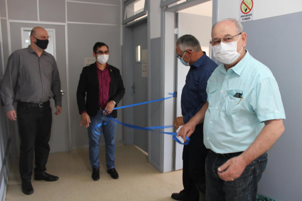 Na manhã desta terça-feira (21), o campus da UFSM em Cachoeira do Sul realizou a inauguração de cinco espaços nas dependências da UFSM-CS. Estiveram presentes na solenidade o Diretor e o Vice-diretor do campus, os professores Rogério Brittes e Lucas Delongui, e os primeiros diretores do campus, professores José Mario Doleys Soares e Hilton Gründling. Na cerimônia ainda participaram alguns coordenadores de área e de curso e servidores da instituição.
