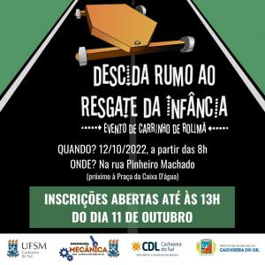 Projeto de extensão do campus, em parceria com a Secretaria Municipal dos Desportos (SMD) e com a Câmara de Dirigentes Lojistas (CDL – Cachoeira do Sul), realizará Corrida de Carrinhos de Rolimã