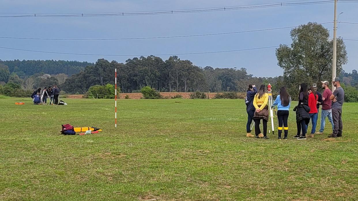 Alunos da disciplina de “Fundamentos de Topografia e Geodésia” do curso de Agronomia da UERGS estiveram no campus da UFSM em Cachoeira do Sul para uma aula prática, na manhã desta quarta-feira, dia 24 de agosto. A disciplina, ministrada pelo professor Alberto Knies, tem como um de seus objetivos praticar e reconhecer o terreno de forma matemática, a partir dos instrumentos de medidas topográficas e de posicionamento geográfico. Assim, os estudantes utilizam os equipamentos topográficos da UFSM para as aulas práticas do semestre.