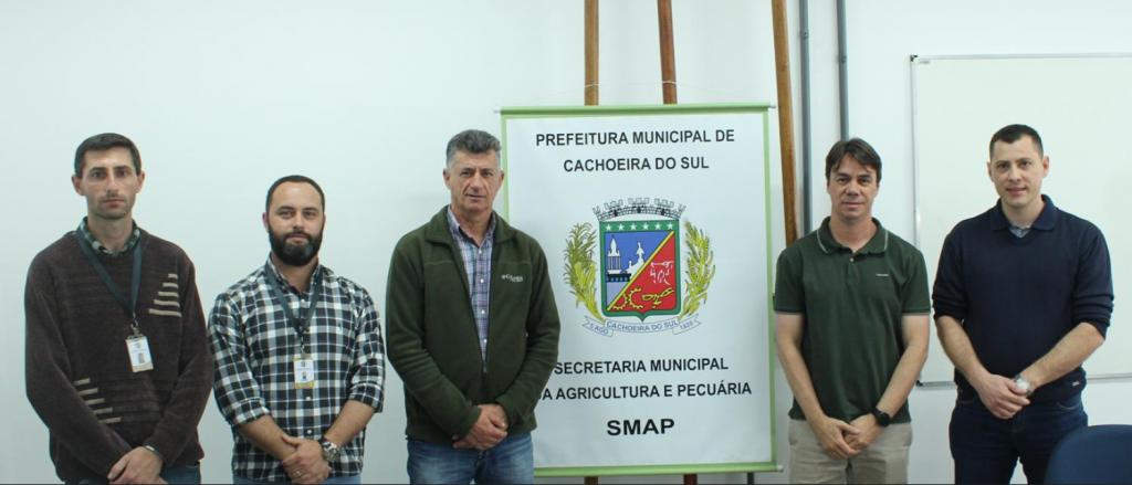 Pesquisadores da UFSM, secretário da Agricultura e Pecuária e demais representantes da SMAP