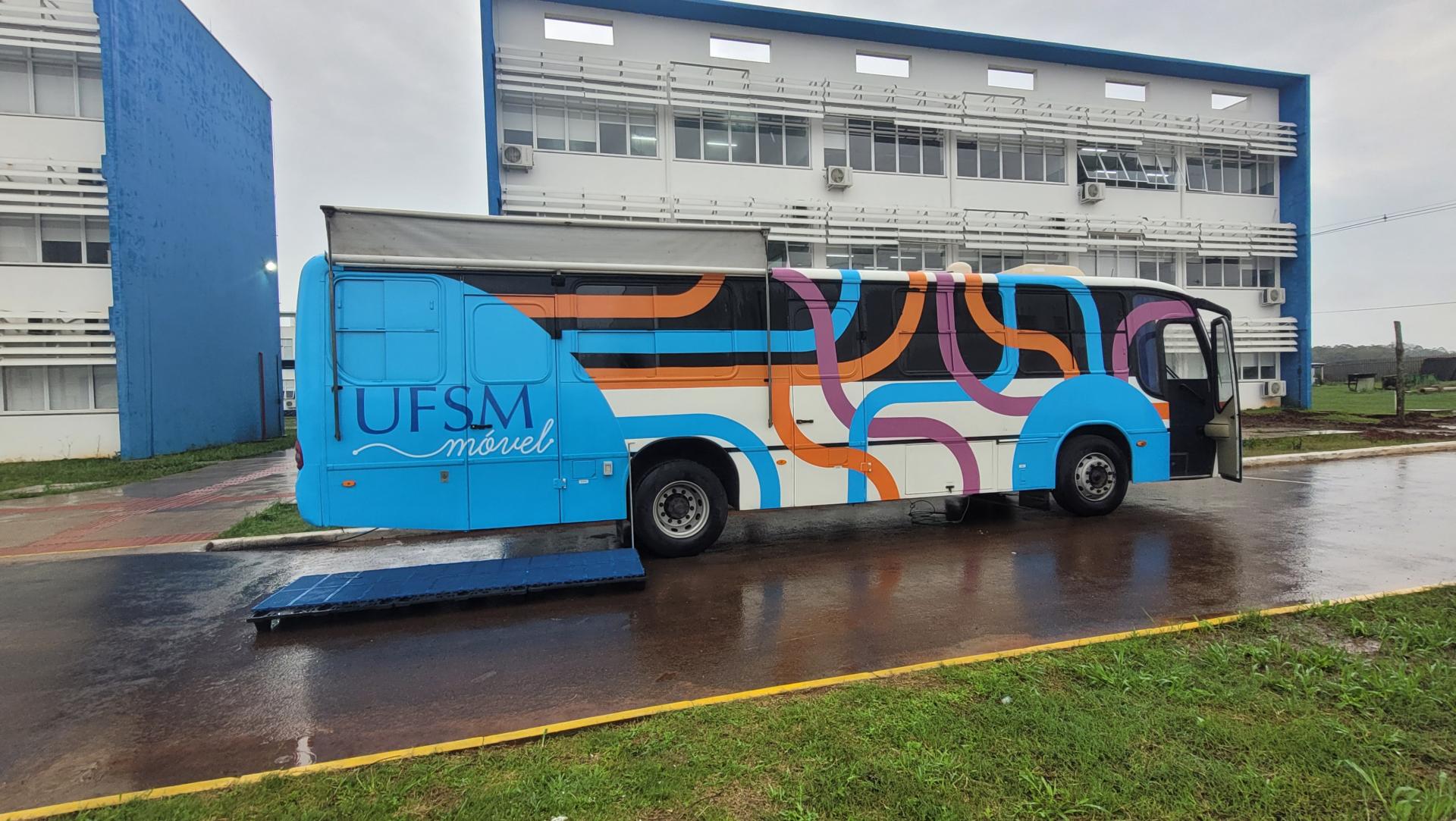 O UFSM Móvel foi criado a partir da ideia de uma universidade em movimento. A identidade visual utilizada no veículo foi elaborada pela estudante do curso de Desenho Industrial Greice Pettine Vestena, que atua como bolsista na Editora.