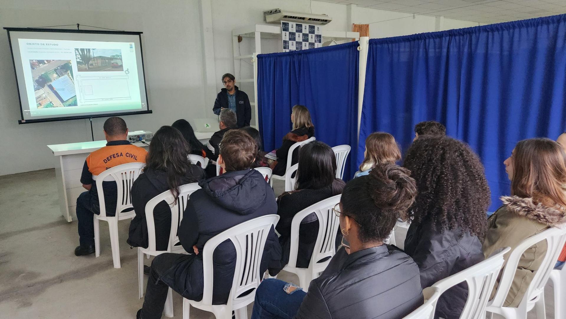 Na tarde da última sexta-feira, dia 24, após duas semanas de trabalho contínuo, integrantes do curso de Arquitetura e Urbanismo do campus da UFSM em Cachoeira do Sul receberam membros da Defesa Civil e da Prefeitura Municipal para apresentar os seus protótipos. Estavam presentes na apresentação, o superintendente da Defesa Civil de Cachoeira do Sul Edson Júnior; o coordenador Adjunto da Defesa Civil da região central Ten. Ivan Flores da Rosa; a engenheira Civil da Prefeitura Municipal Jéssica Oliveira da Silva e a diretora da Secretaria de Inclusão Social do Município Daniele Meyer.