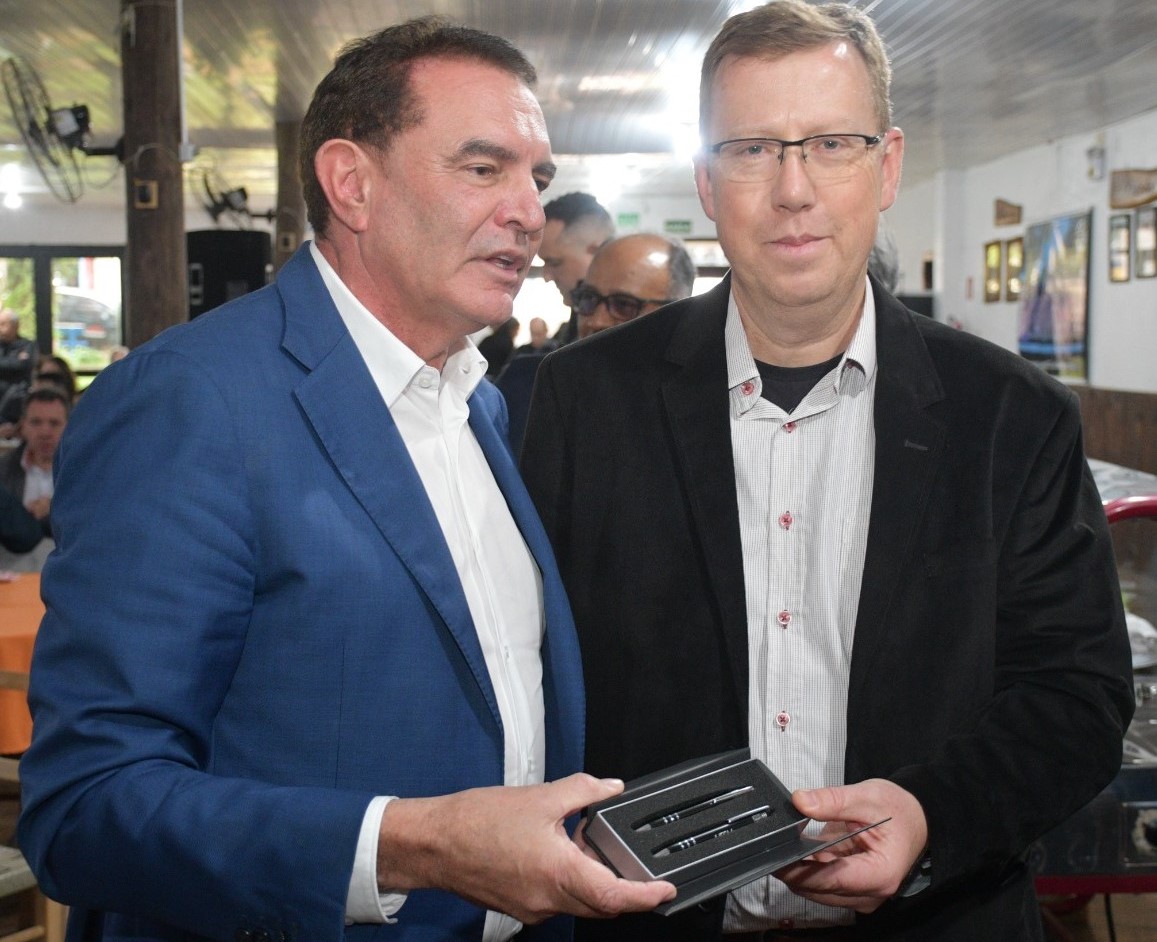 Na última quarta-feira, dia 07 de agosto, o diretor do campus da UFSM em Cachoeira do Sul, Anderson Dal Molin, e o coordenador Administrativo, Júlio Modesto, estiveram em um encontro com o empresário Pedro Henrique Brair, fundador da rede de Farmácias São João. Na oportunidade, que aconteceu durante o Cacisc Meio-dia, na Fenarroz, o empresário se comprometeu em financiar pelo menos 50% dos custos para a execução do projeto de revitalização da Estrada da Ferreira.
