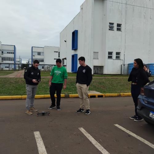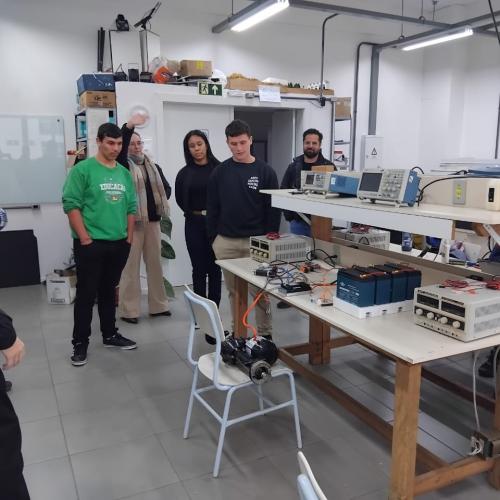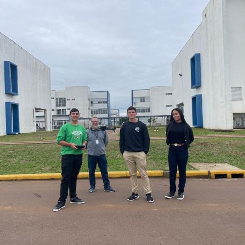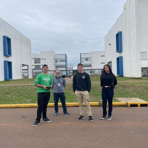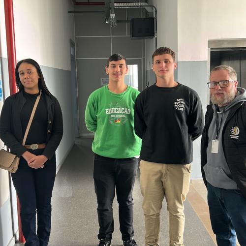 Os estudantes Luiza Nunes (Escola Borges de Medeiros), Henrique Pereira (CIEP) e Lucas Jardim (Escola Diva Costa Fachin) foram recebidos por professores e servidores da universidade e puderam visitar laboratórios, salas de aula e projetos desenvolvidos pelos cursos de Engenharia Elétrica e Engenharia Mecânica. A visita foi conduzida pelo professor Diogo Vargas, do curso de Engenharia Elétrica.