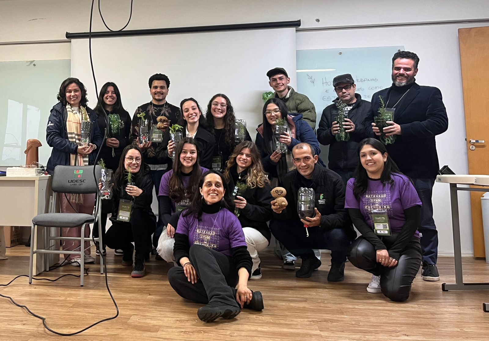 A UFSM – Cachoeira do Sul esteve representada no 43º Seminário de Extensão Universitária da Região Sul (SEURS), realizado de 22 a 25 de julho de 2025, no campus da UDESC, em Lages (SC). O evento contou com a participação de estudantes e docentes do projeto de extensão Educação Sustentável Integrada: Semear Conhecimento para Transformar Realidades, com a oficina intitulada “Hortas Urbanas e Escolares como Estratégias de Justiça Socioambiental: Saberes, Sustentabilidade e Autonomia”.