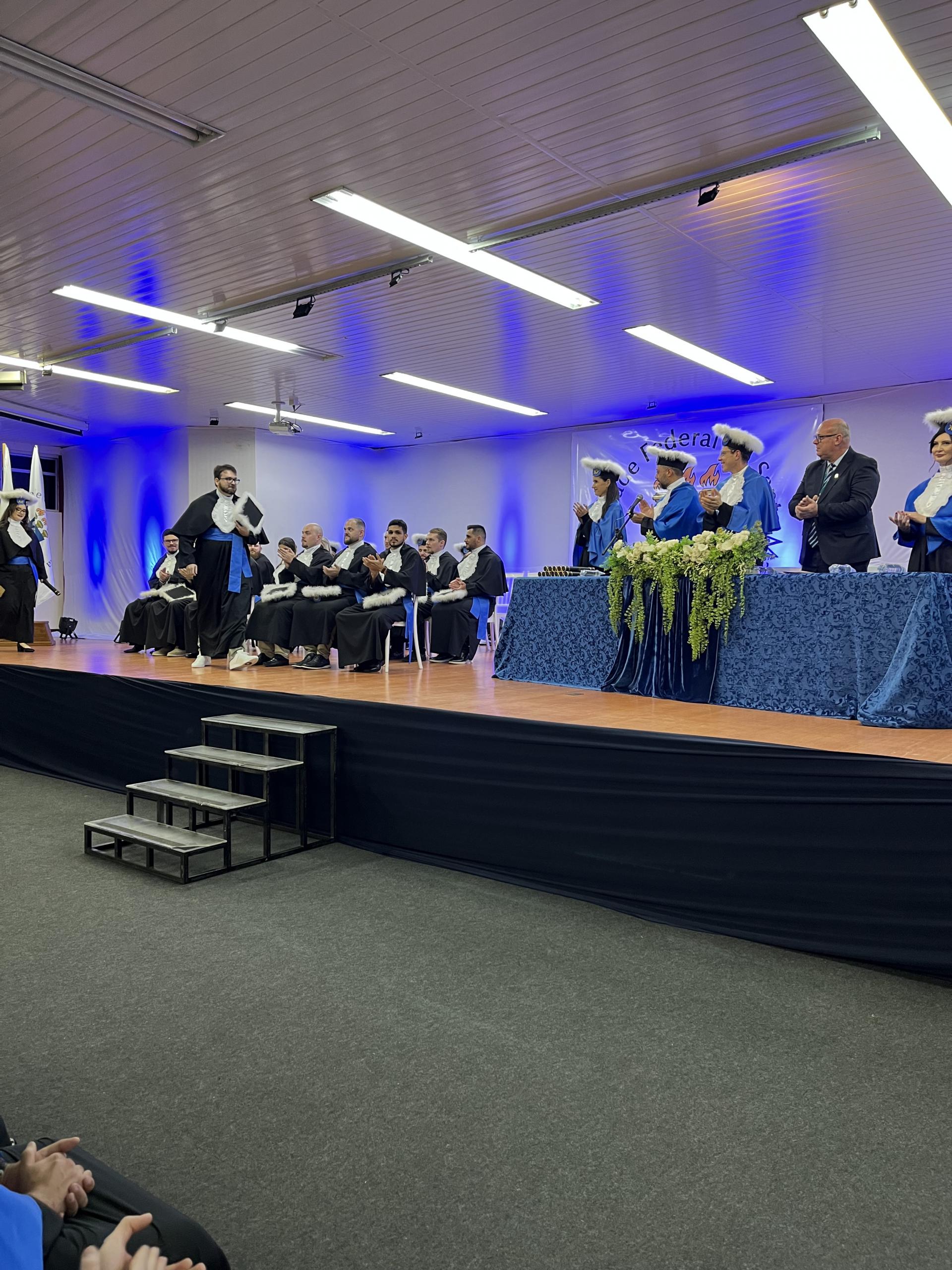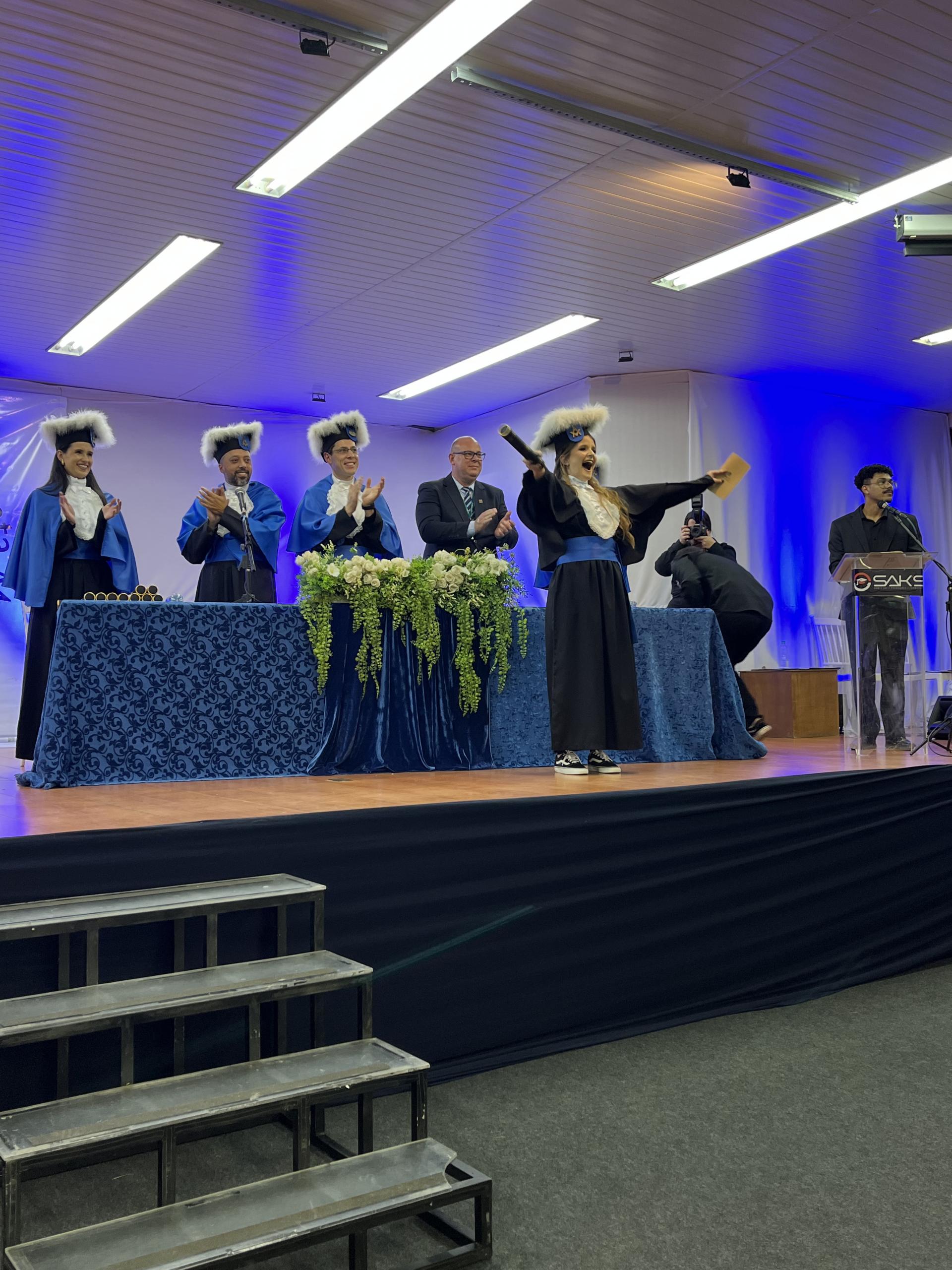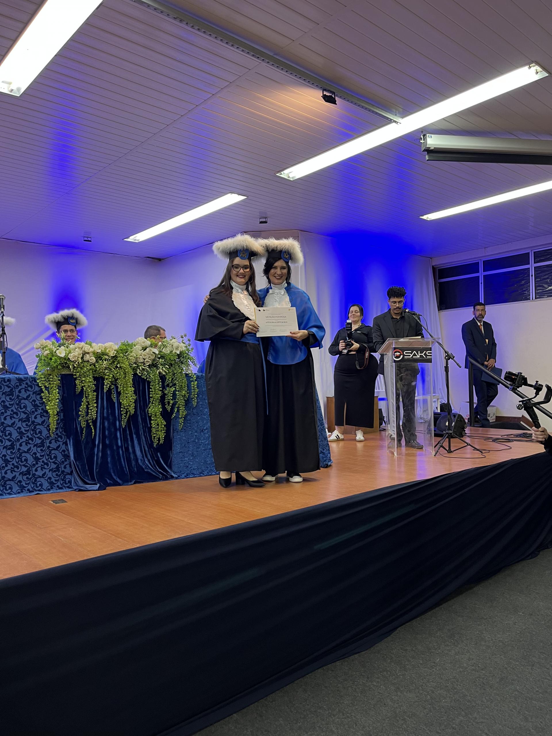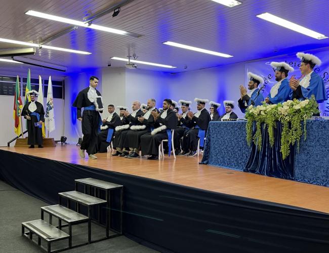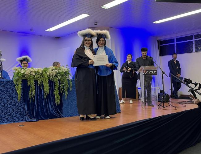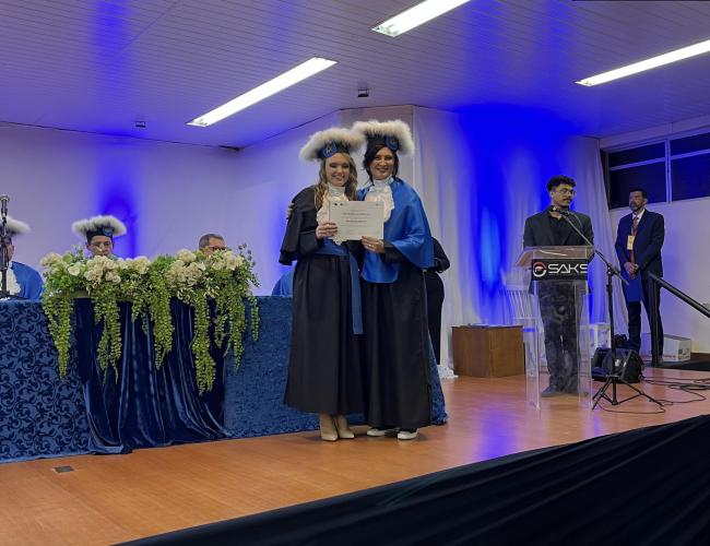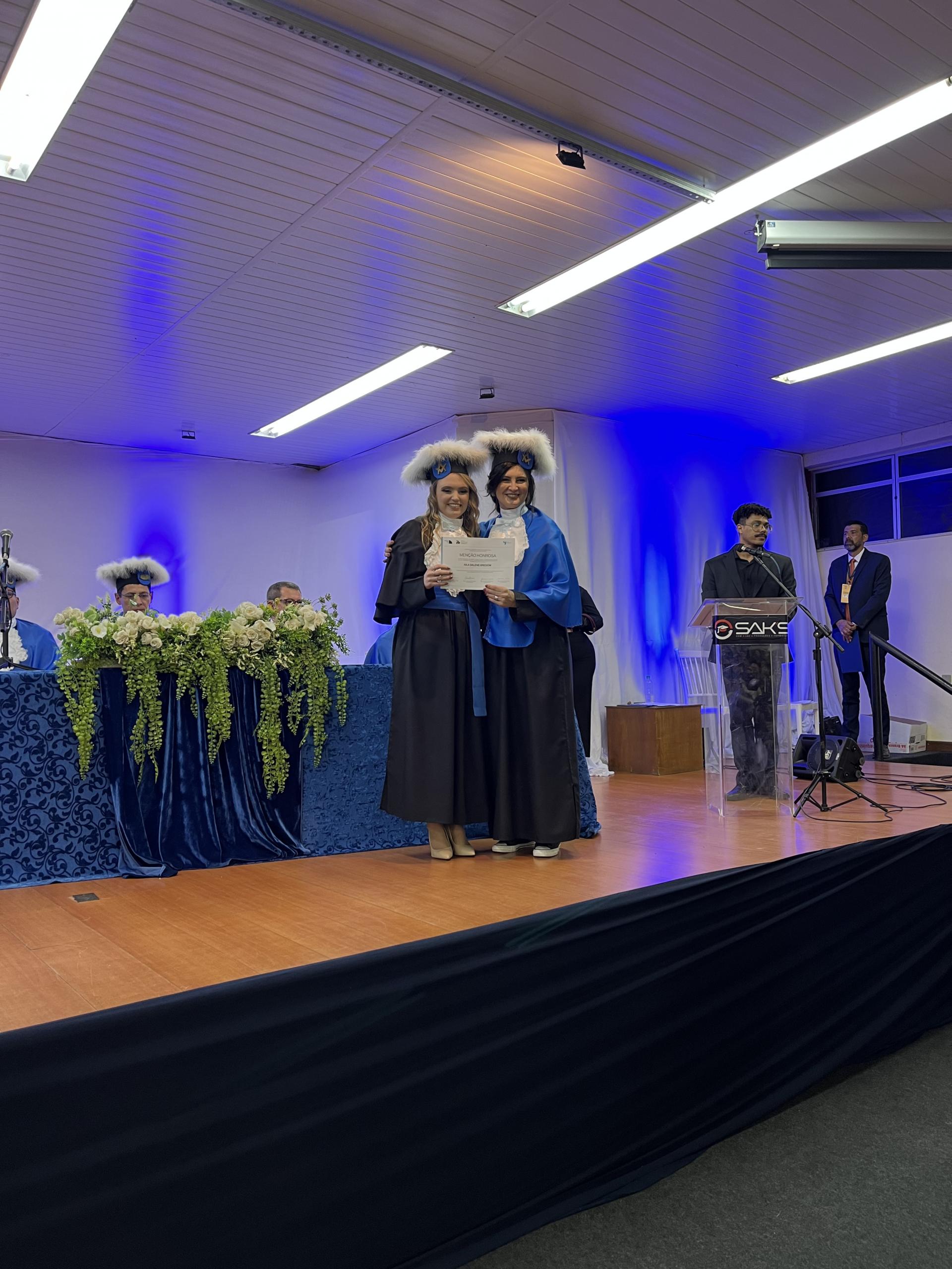 Além da colação de grau, a noite também foi de reconhecimento. Alunas do curso de Arquitetura e Urbanismo foram premiadas pelo Instituto de Arquitetos do Brasil (IAB). A formanda Letícia Dalla Corte da Silva recebeu o Prêmio José Albano Volkmer, na subcategoria Edificações, enquanto a formanda Aila Dalene Bredow foi agraciada com o Prêmio Ivan Mizoguchi, na subcategoria Planejamento Urbano e Regional.