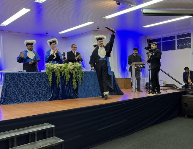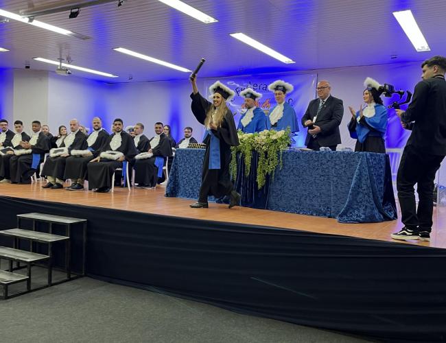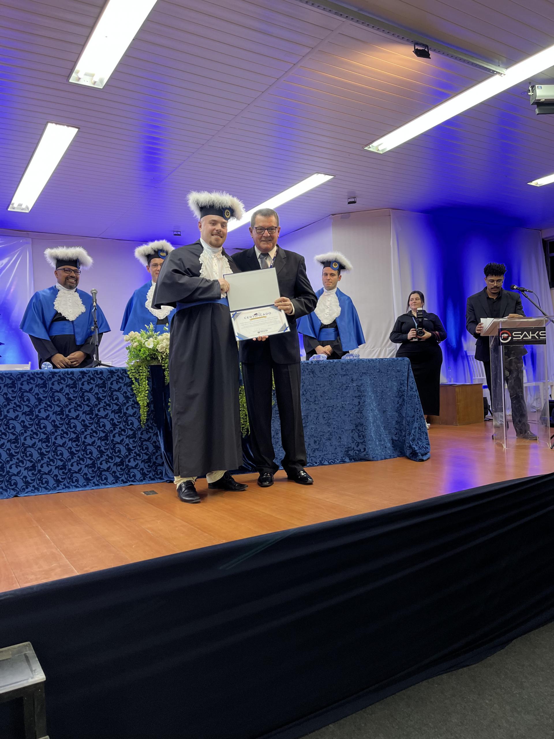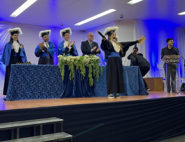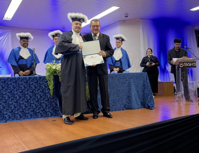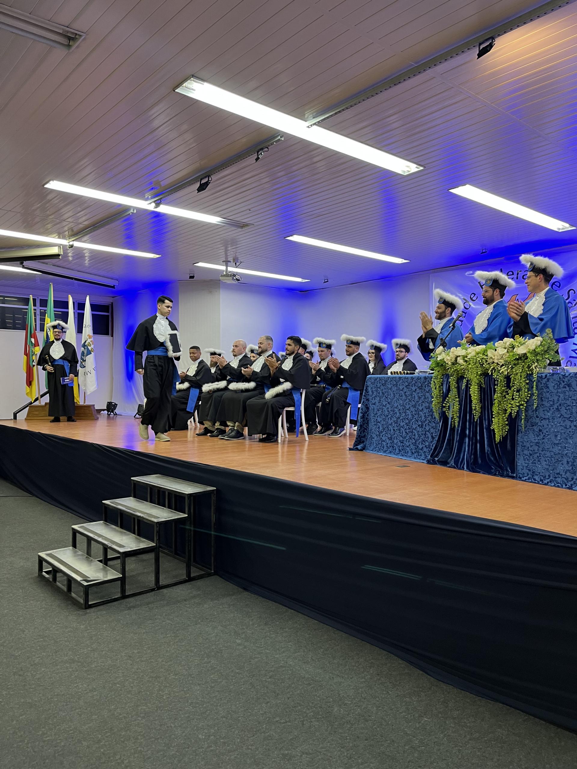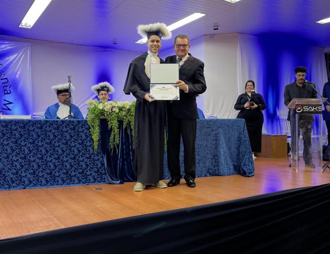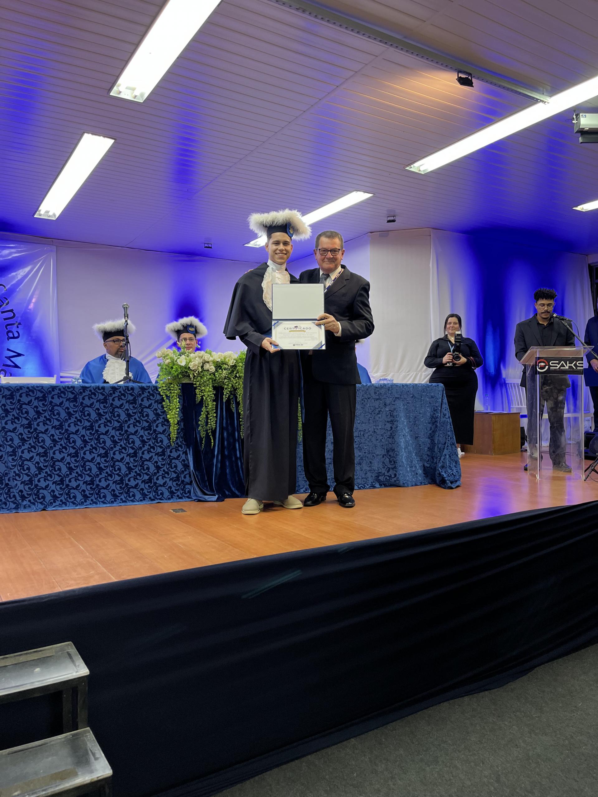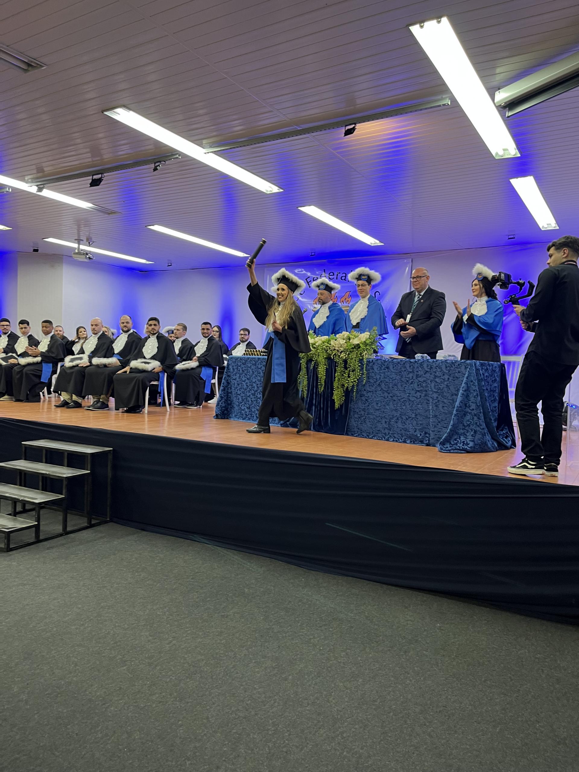 Além da colação de grau, a noite também foi de reconhecimento. Alunas do curso de Arquitetura e Urbanismo foram premiadas pelo Instituto de Arquitetos do Brasil (IAB). A formanda Letícia Dalla Corte da Silva recebeu o Prêmio José Albano Volkmer, na subcategoria Edificações, enquanto a formanda Aila Dalene Bredow foi agraciada com o Prêmio Ivan Mizoguchi, na subcategoria Planejamento Urbano e Regional.