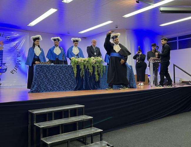 A noite do último sábado, 02 de agosto, foi marcada por emoção e celebração durante a cerimônia de colação de grau dos cursos da UFSM – Campus Cachoeira do Sul, referente ao 1º semestre de 2025. O evento ocorreu às 19h, no Salão de Atos da ULBRA, reunindo formandos, familiares, amigos, docentes e servidores da instituição.
