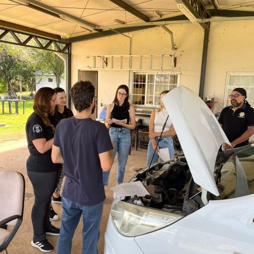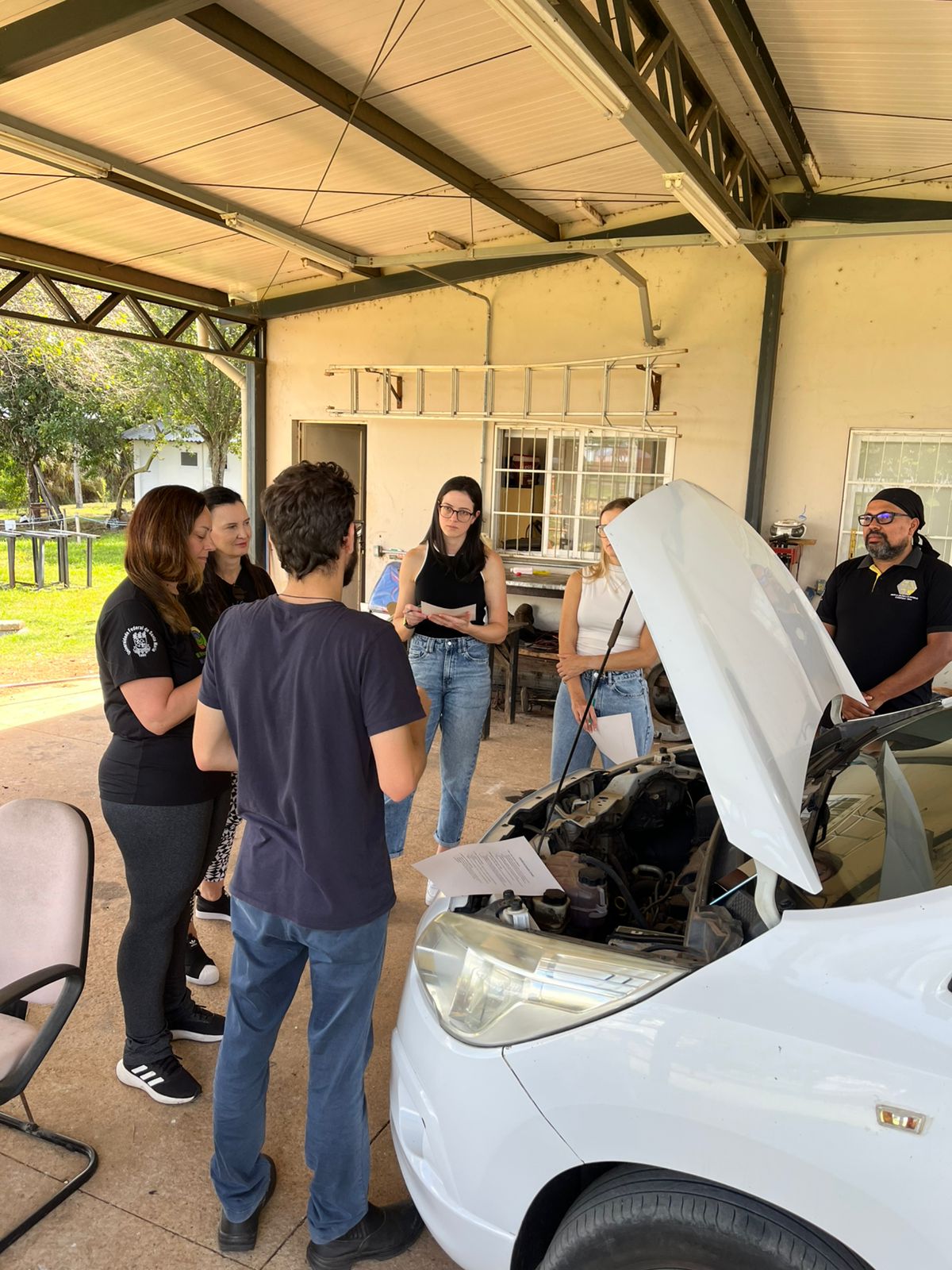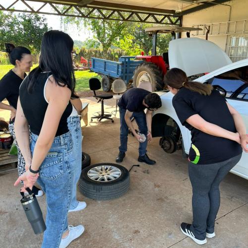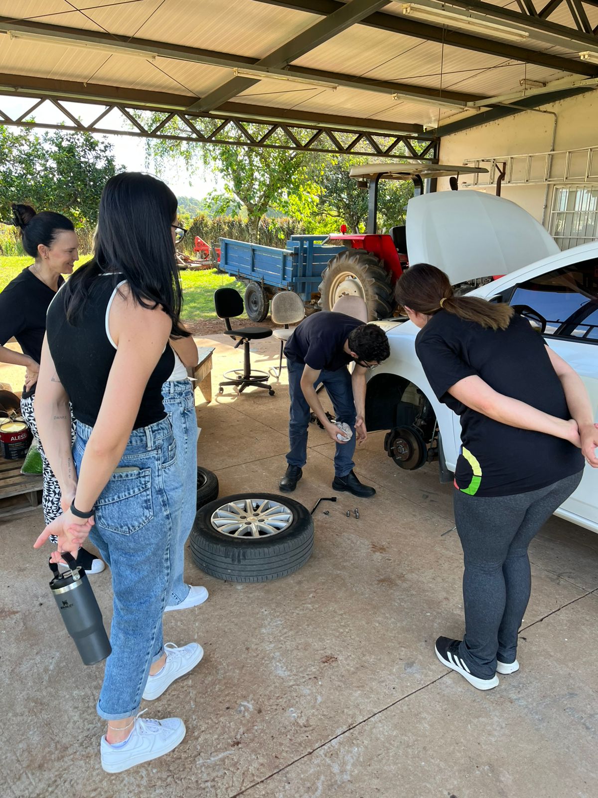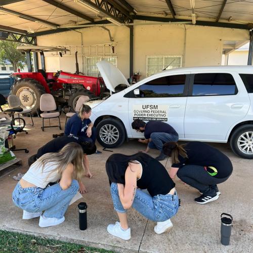 Já no dia 13 de março, foi realizada a oficina “Noções Básicas de Mecânica”, conduzida pelo discente Iago Ellwanger, sob orientação do professor Ederval de Souza Lisboa, na garagem da Casa Administrativa. Durante o encontro, as servidoras puderam aprender noções fundamentais relacionadas à mecânica, ampliando conhecimentos úteis para o cotidiano.