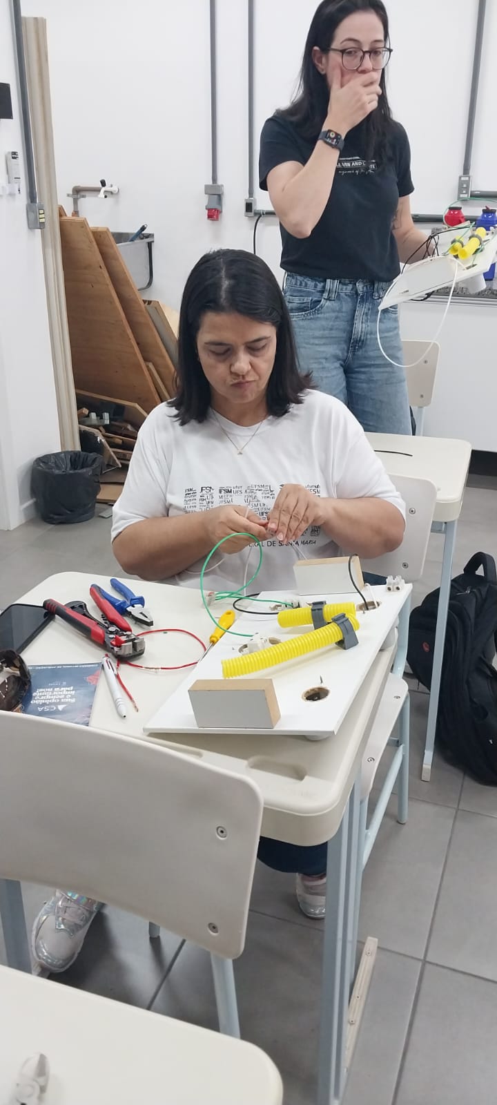 No dia 10 de março, ocorreu a oficina “Noções Básicas de Instalações Elétricas”, ministrada pela professora Criciéle Castro Martins, no Laboratório de Engenharia Elétrica. A atividade proporcionou às participantes o contato com conceitos introdutórios e aplicações práticas da área.
