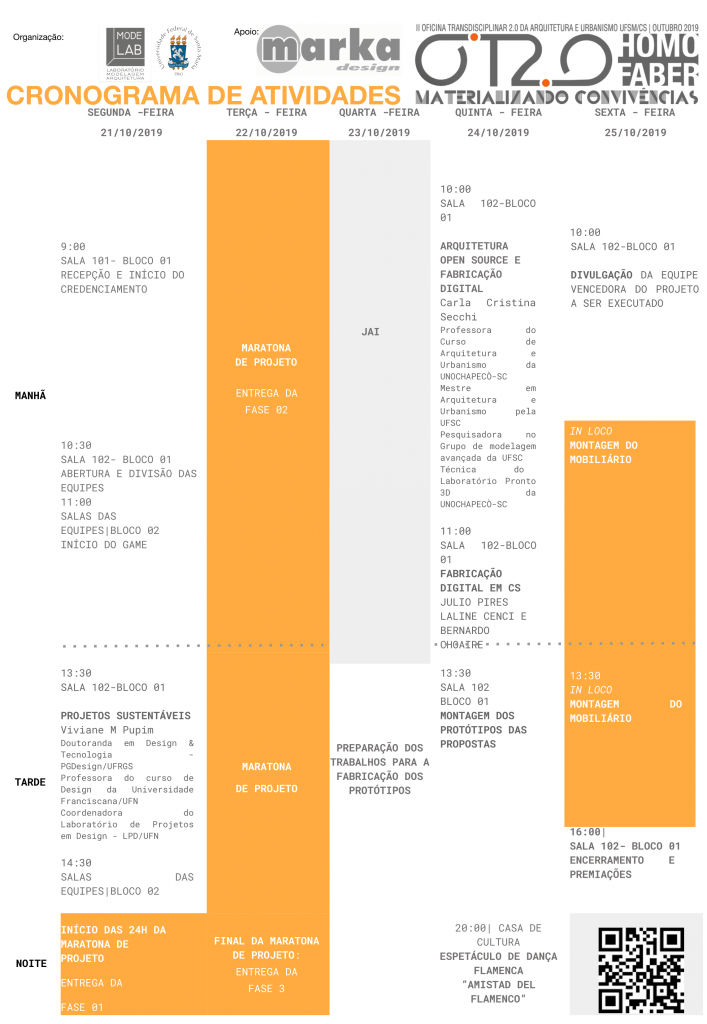 A II Oficina, a ser realizada entre os dias 21 e 25 de outubro de 2019, possui como temática “Homo Faber: materializando convivências”, que trará a discussão sobre a fabricação digital no processo de projeto e desenvolvimento de produto.