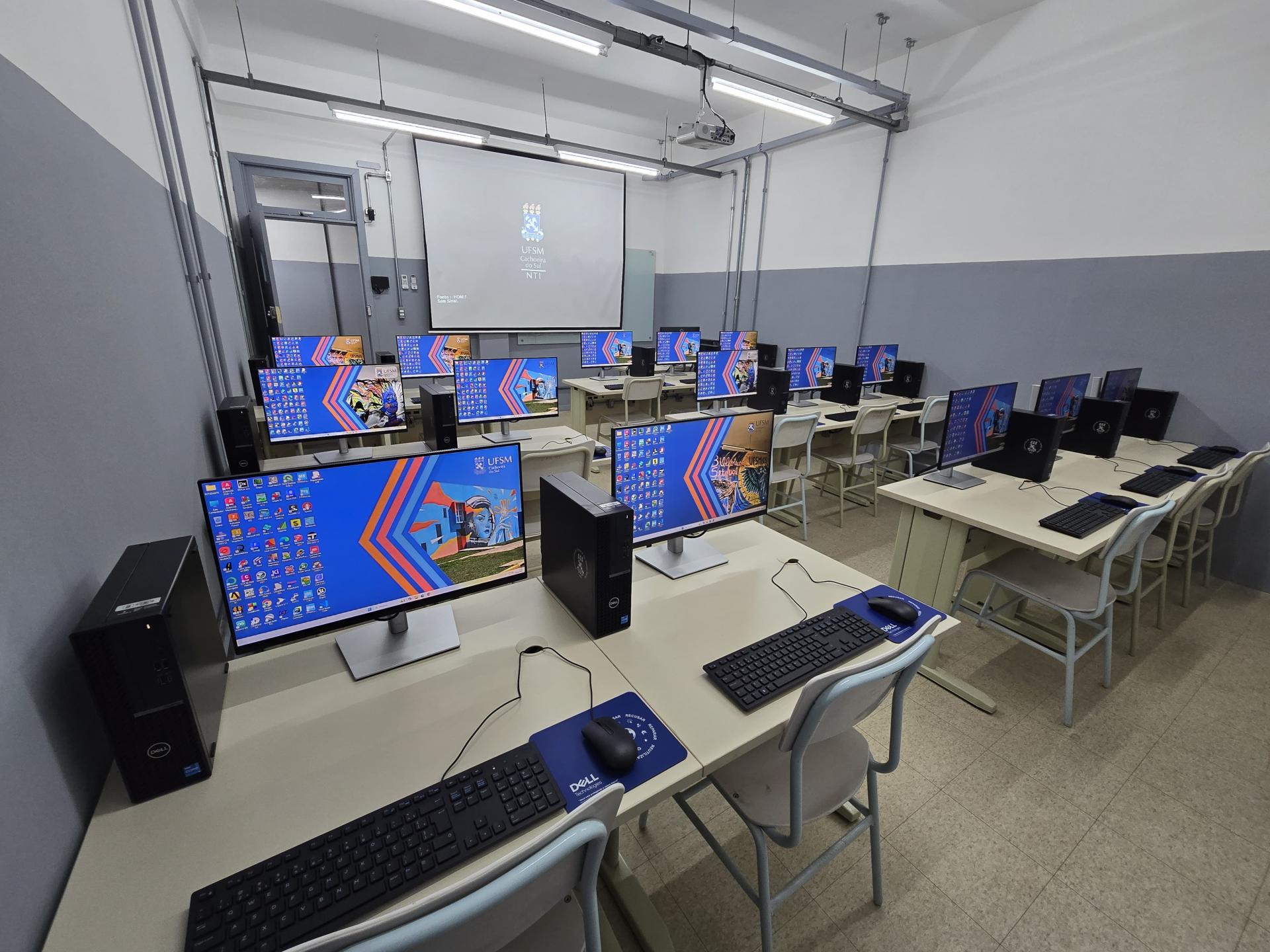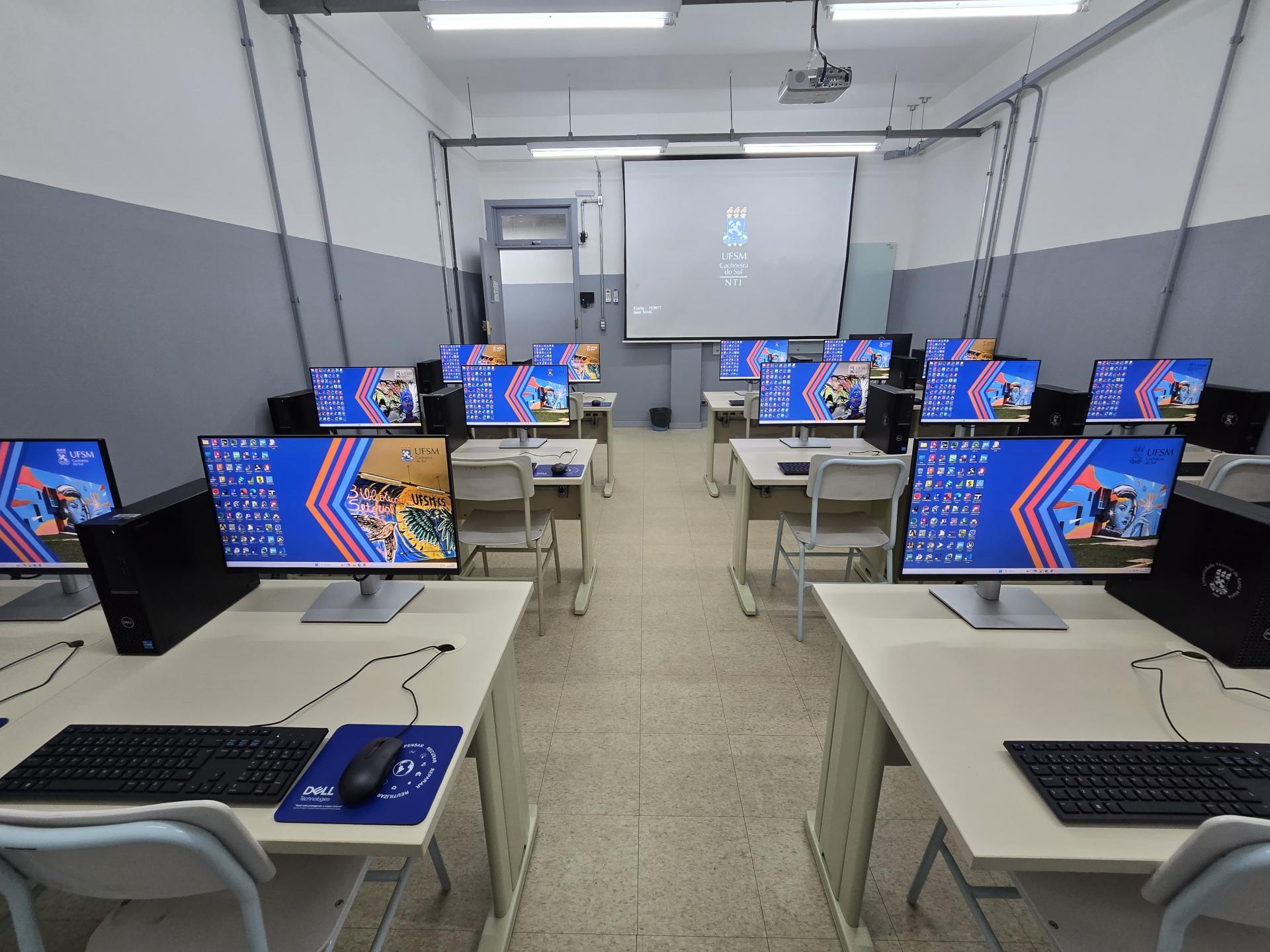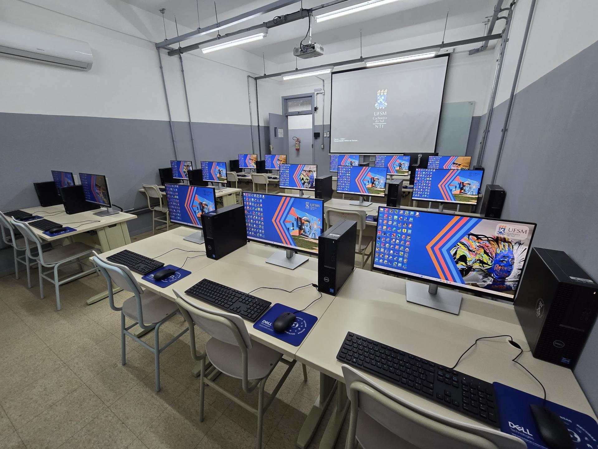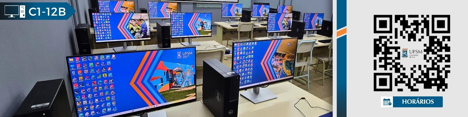 O laboratório encontra-se no 1º andar do Prédio C1, Sala 12B, campus da UFSM em Cachoeira do Sul. Este espaço possui dezesseis (16) computadores do tipo desktop, conectados à internet por rede cabeada, com as seguintes configurações: