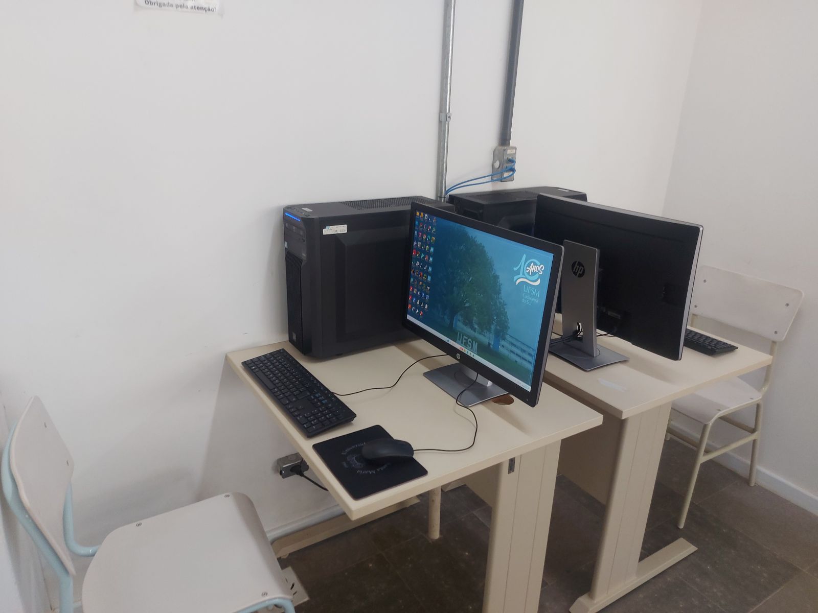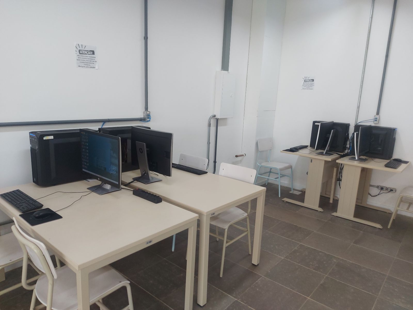 Além dos computadores, o laboratório dispõe de outros recursos. Cabe destacar: