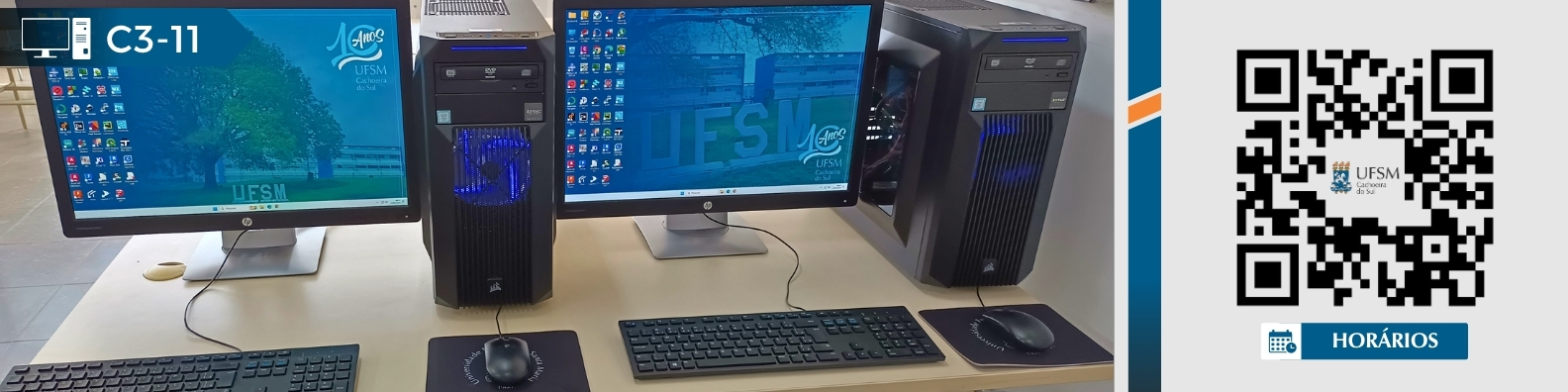 A sala de estudos está localizada na Biblioteca Setorial de Cachoeira do Sul (BSCS), situada no 1º andar do Prédio C3, Sala 11, no campus da UFSM em Cachoeira do Sul. O controle de utilização é supervisionado pela equipe da biblioteca. Este ambiente dispõe de seis (06) computadores desktop, conectados à internet por meio de rede cabeada, com as seguintes configurações: