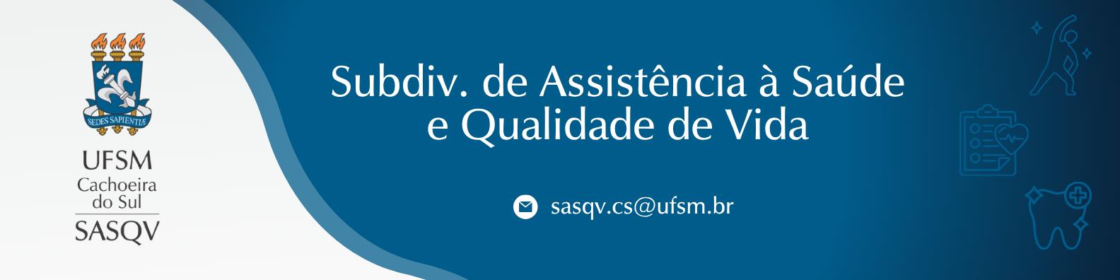 A Subdivisão de Assistência à Saúde e Qualidade de Vida (SASQV-CS) tem como competência o planejamento, desenvolvimento e acompanhamento de ações voltadas à promoção da saúde e da qualidade de vida dos(as) servidores(as) do Campus da UFSM/CS.