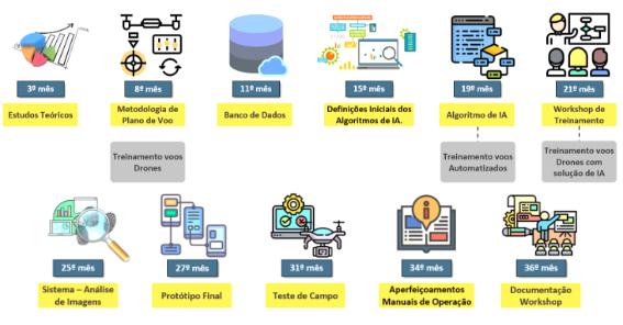 Segundo o planejamento, o projeto será desenvolvido em 36 meses. Entre as principais etapas do projeto estão os estudos teóricos, o treinamento dos voos dos drones e a configuração dos algoritmos de Inteligência Artificial.