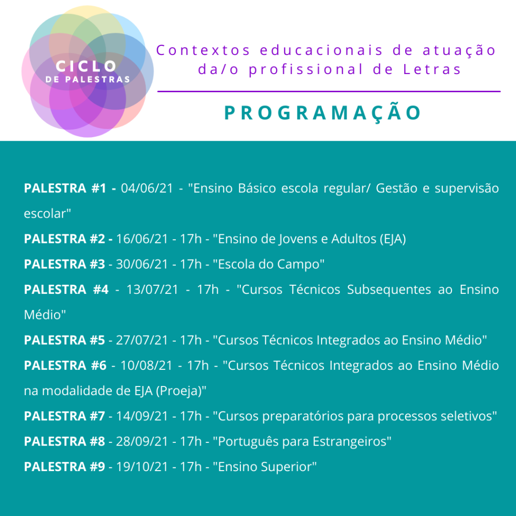 Ciclo de Palestras “Contextos educacionais de atuação da/do profissional de Letras”