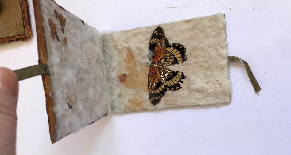 Sem título, 2020.Livro arte.Colagem, assemblagem – matéria orgânica, tecido, cera.15 x10 cm |