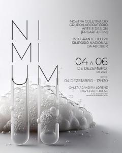 Na presente mostra coletiva, distintos olhares de um grupo de artistas-pesquisadores do Grupo Arte e Design, percorrem universos interiores e exteriores, configurando, por diferentes meios e processos, formas de manifestação artística a partir do que foi visto, sentido, e, aqui, expresso em concepções singulares, emergidas conceitualmente da proposição do termo “demais” (NIMIUM). Na relação entre o que está vivo e o que não está (língua morta/latim e língua viva/português), a ambiguidade da grafia, da sonoridade, das formas de uso em termos de linguagem escrita e falada, constituem provocações criativas para abordar as metamorfoses vitais, o que nasce e o que morre, continuamente, em fluxo, em se tratando do viver e/ou da restauração da vida em seu curso natural. [Reinilda Minuzzi]