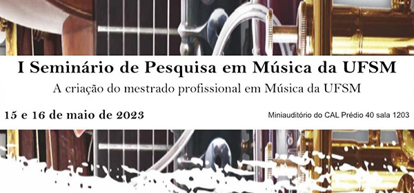O I Seminário de Pesquisa em Música da UFSM tem como tema principal a criação do mestrado profissional em Música da UFSM. O evento contará com palestras e mesas-redondas que visam discutir o perfil e os objetivos da criação deste novo curso. Também haverá comunicações docentes e discentes relacionadas aos projetos de pesquisa dos docentes que integram a proposta de criação do curso de mestrado profissional da UFSM. O evento é aberto a toda a comunidade acadêmica do CAL, em especial a discentes e egressos interessados em pesquisa e que almejam ingressar na pós-graduação.