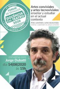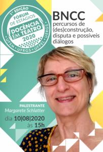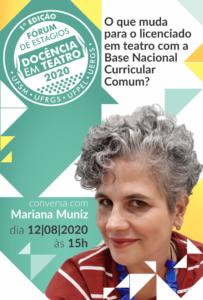 Nesse momento, o foco é estudar o documento que norteia nossa prática e estrutura de currículos: a BNCC e pensar o teatro no contexto da pandemia e do ensino remoto. Para isso é com alegria que recebemos a fala qualificada de Margarete Schlatter (UFRGS) e de Mariana Muniz (UFMG). O evento se torna internacional na medida que temos a alegria de receber o professor Jorge Dubatti da Universidade de Buenos Aires.