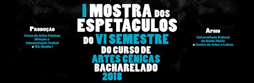 Mostra dos espetáculos dos alunos do VI semestre do Curso Artes Cênicas Bacharelado, composta pelos monólogos da habilitação interpretação teatral e pelas encenações da habilitação direção teatral. Confira a programação abaixo.