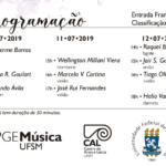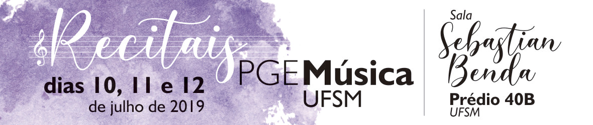 Nos dias 10, 11 e 12 de julho de 2019, na Sala Sebastian Benda do prédio 40B/UFSM, acontece os recitais da primeira turma da Pós-Graduação – Especialização em Música – Músicas dos Séculos XX e XXI (PGE Música) da Universidade Federal de Santa Maria.