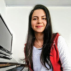Natural de Belo Horizonte (MG), é Bacharel e Mestre em Música (Piano) pela UFMG. Atualmente desenvolve pesquisa de doutorado sobre o Método Suzuki de Piano no Programa de Pós-Graduação em Música da UFMG, sob orientação da Dra. Patrícia Furst Santiago. É professora do Ecos Centro Musical desde 2013, lecionando piano para crianças a partir dos 3 anos de idade e, desde 2016, integra o corpo docente da Escola de Música da UEMG, atuando nos cursos de graduação e na extensão. Nos últimos anos vem se dedicando intensamente à área da Pedagogia do Piano, promovendo e participando de diversos cursos de capacitação de professores. Como pianista, foi premiada em importantes concursos nacionais e atua regularmente como camerista. É membro da Suzuki Association of the Americas (SAA), da Associação Musical Suzuki do Brasil (AMSBrasil) e do TeclaMinas- Grupo de pesquisa em Performance e Pedagogia do Piano. |