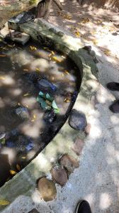 O primeiro recinto é composto por 10 animais das espécies jabuti-piranga (Chelonoidis carbonaria) e jabuti-tinga (Chelonoidis denticulata), que possuem hábitos terrestres. Já o segundo recinto possui um lago e é integrado por cerca de 15 animais com hábitos aquáticos, das espécies cágado-cabeça-de-cobra (Hydromedusa tectifera), tartaruga-tigre-d’água (Trachemys dorbigni) e cágado-da-cabeça-vermelha (Trachemys scripta).  Observou-se que os jabutis no decorrer dos dias movimentam-se explorando o recinto, dormindo, termorregulando ou comendo. Dessa forma, para instigar seu comportamento natural e fortalecer as mandíbulas, foram planejados enriquecimentos alimentares, como pendurar folhas de verduras e flores em uma altura acessível e desenvolver um comedor acima do chão, em cano de pvc. Já, no segundo recinto trabalhado, os cágados passaram a maior parte do tempo  dentro da água, sendo a termorregulação outro comportamento bastante frequente em momentos de maior incidência solar. Assim, como modo de manter o comportamento de caça ou outras formas de alimentação destes animais silvestres, foi elaborada a proposta da inserção esporádica de peixes pequenos nativos no mesmo lago artificial, como os lambaris (Astyanax sp.), bem como a colocação de plantas aquáticas flutuantes com alimento usual em cima delas, incentivando novas formas de movimentação e quebra de rotina.