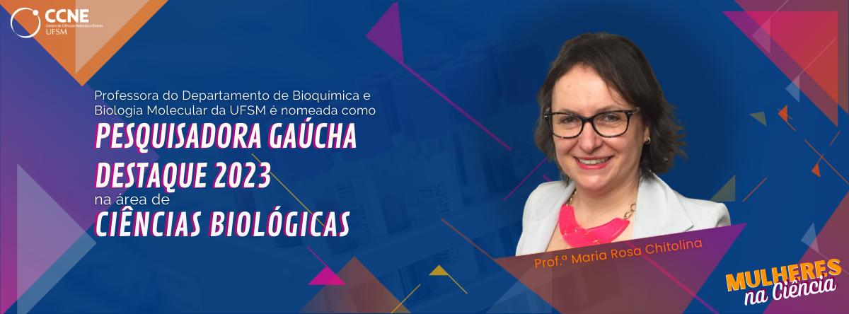 Com o tema “Ciência e Inovação: alicerces do futuro”, o Prêmio Pesquisador Gaúcho 2023* objetiva o reconhecimento do trabalho de pesquisadores e profissionais que se destacaram na academia, nos setores públicos, industrial, empresarial e na área de comunicação. Na categoria Pesquisador Destaque em Ciências Biológicas, que reconhece pesquisadores com uma carreira brilhante na pesquisa científica nas suas áreas do conhecimento, a professora nomeada foi a Dra. Maria Rosa Chitolina.