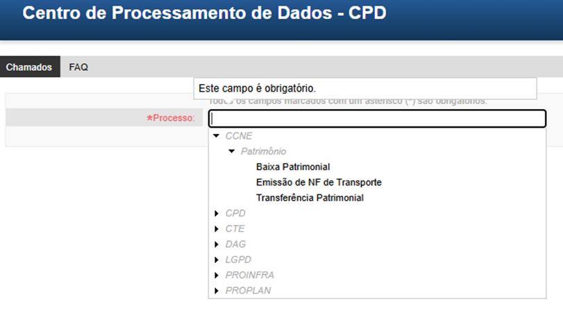As solicitações relacionadas a Baixa Patrimonial/Recolhimento de Bens, Transferência Patrimonial e Emissão de Nota Fiscal de Transporte devem ser realizadas exclusivamente por meio de chamado no sistema OTRS