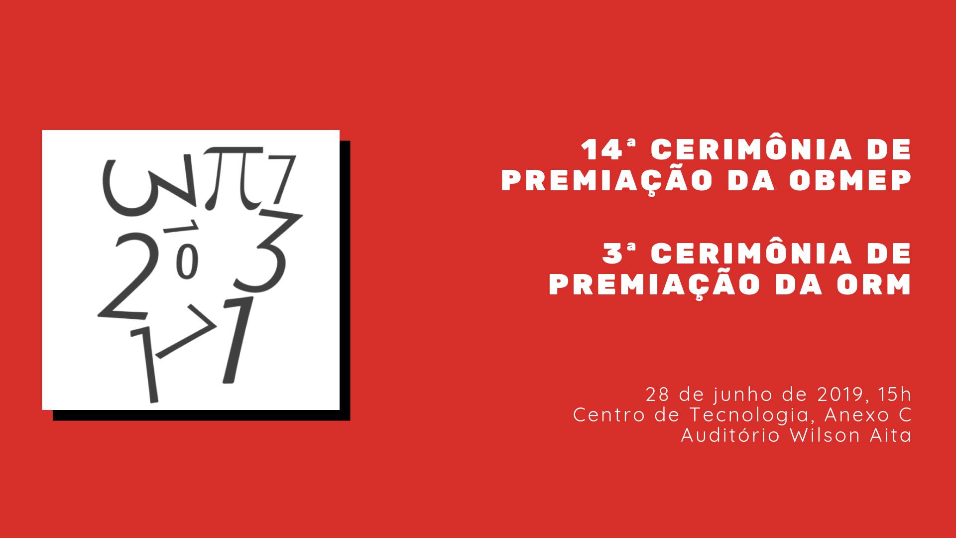 Por isso, no dia 28 de junho, ocorre a entrega de certificados e medalhas a alunos, professores e escolas premiadas da 14ª OBMEP realizada em 2018. Nessa mesma oportunidade, ocorrerá a 3ª Cerimônia de Premiação de Olimpíada Regional de Matemática (ORM), promovida pelo Programa de Educação Tutorial (PET) – Matemática.