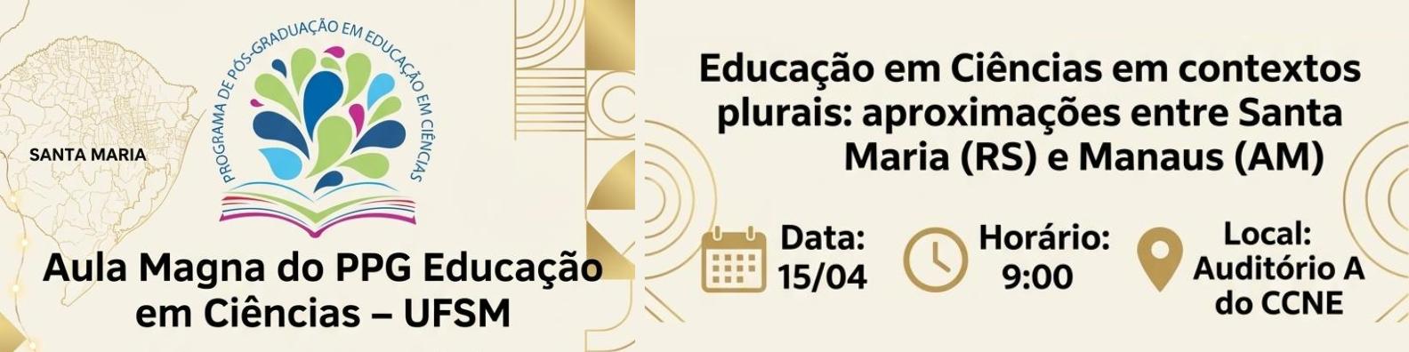 Na próxima quarta-feira (15), ocorrerá a Aula Magna do Programa de Pós-graduação em Educação em Ciências: Química de Vida e Saúde (PPGECi). A aula será às 9h no Auditório A do Centro de Ciências Naturais e Exatas (CCNE).